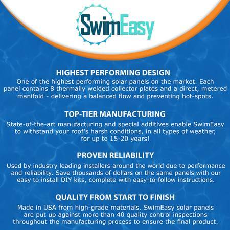 There are 4 panels making up 160 sq ft including all the attachments. Hooks up to your existing water filter, set up is no hassle. You can have a warm pool right around the corner with this.