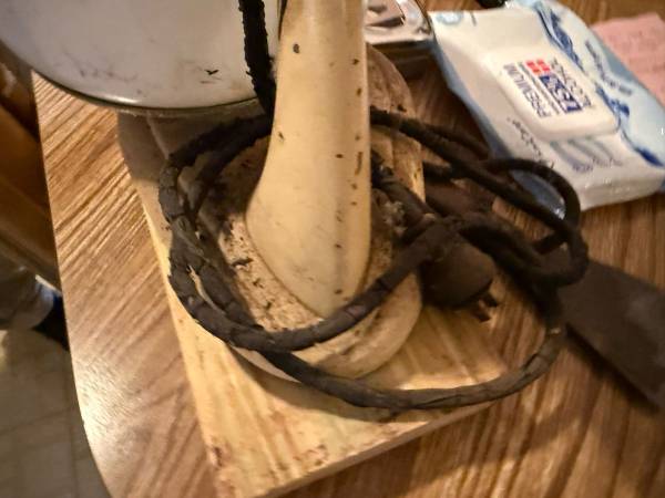 Please see pictures. Don’t know much about it and no guarantee it works. It’s very heavy and cord is frayed. It’s been stored in in-laws attic for decades and is dirty as can be seen in pictures. Porch pickup from our home in Wildhorse subdivision in Chesterfield mo.