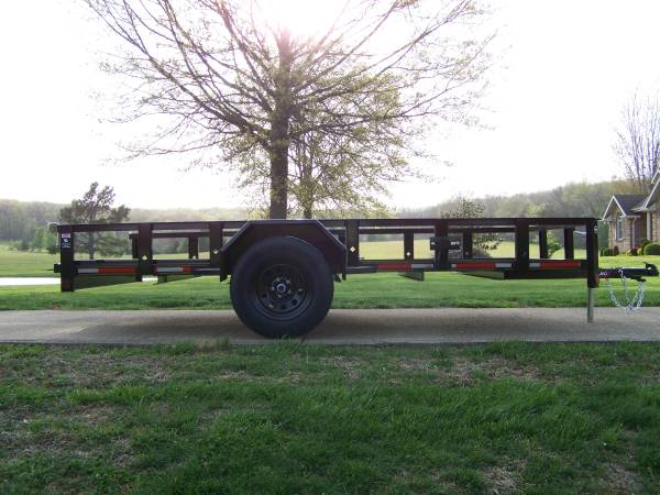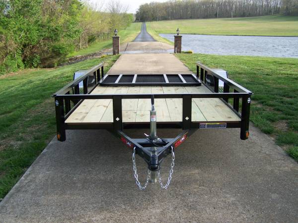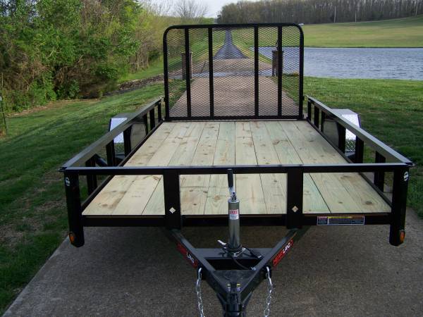 NEW - 12' Single Axle Trailer w/spring loaded 4' Gate * 100% Powder coated * Treated Wood Floor * Set back top wind jack * Rubber mounted LED lights * 3" Channel tongue * 3500# Easy lube idler axle...