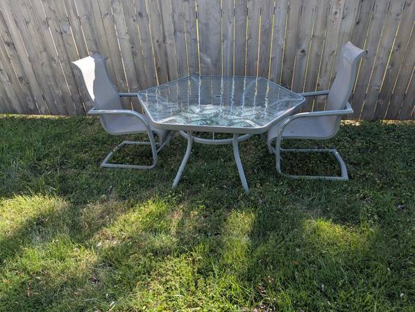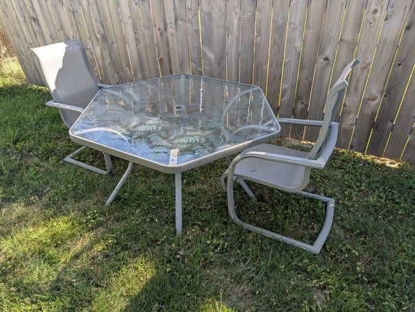 Used large outdoor furniture and 2 chairs. Umbrella and stand also come with the table and chairs. Great shape. Florissant, Missouri 63031 pickup. $80. Cash only. Call or text.