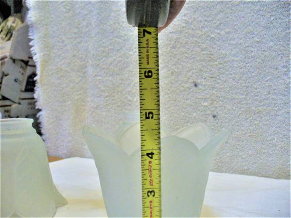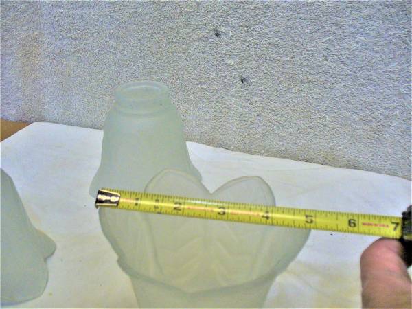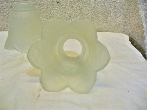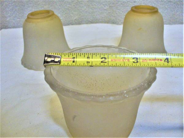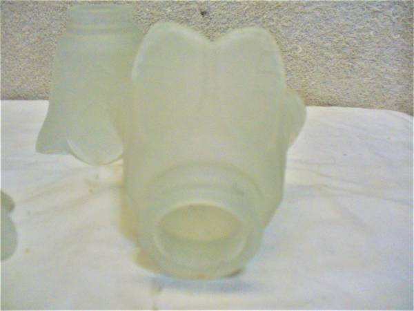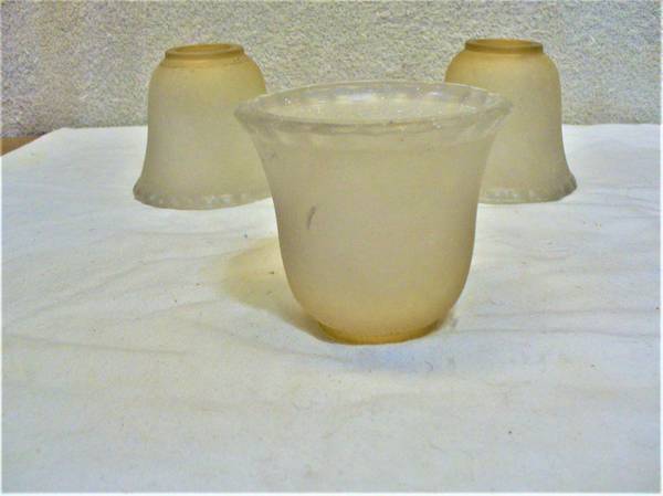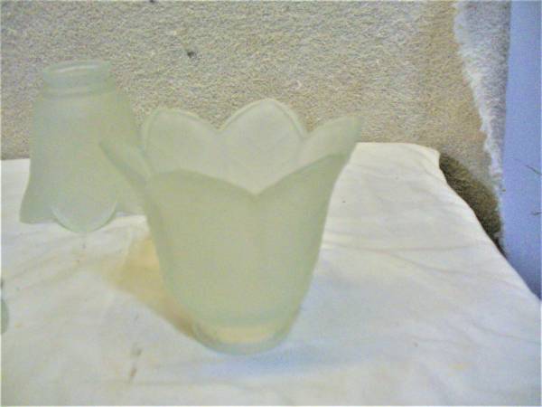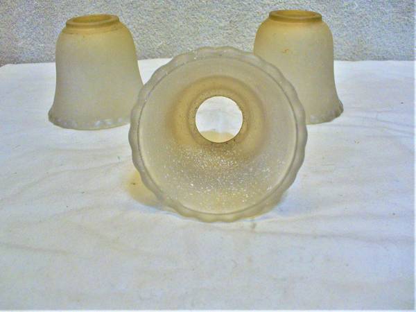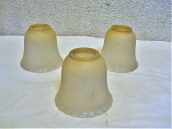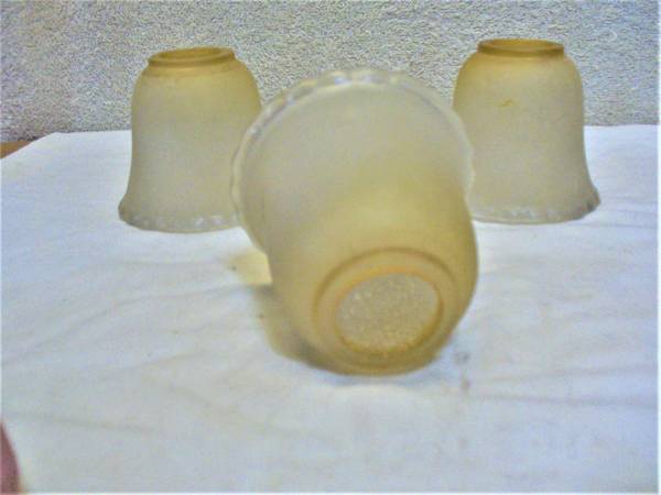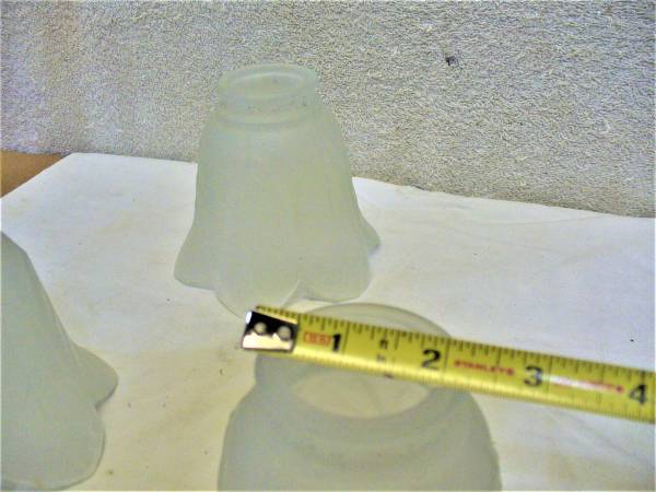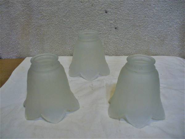 Three Frosted Glass tulip shades 5 inch deep X 4 1/2 inch opening, 2 1/4 inch mounting flange. $1 each.