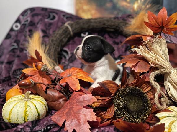 Males and females available. There’s pied black and white, and brindle. Delivery available free in 15 mile radius and flat fee up to 30. Pick up available as well.