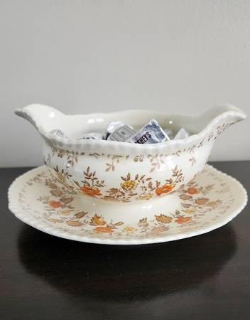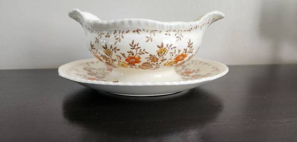 Beautiful Autumn-themed piece of China. This gravy boat like piece is by Ridgways Royal Semi-Porcelain in the pattern 'Meadowbrook'. Made in England. Asking $10 or best offer. Pick up in South St. Louis City, 63109 (about one mile from the Ted Drewes Frozen Custard on Chippewa).
