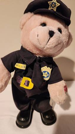 This Police Bear used to dance, but the battery seems to have expired, and I am not sure how to replace them. Still a cute bear; it stands 14” tall. Asking $5. Pick up in South St. Louis City, about one mile from the Ted Drewes Frozen Custard that is on Chippewa, 63109.
