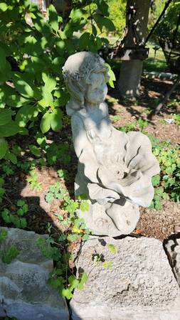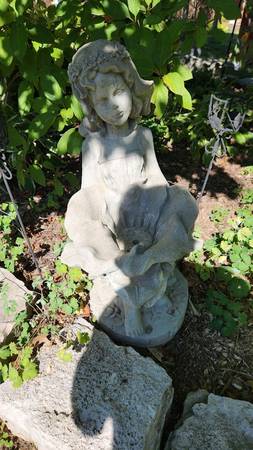 This is a lovely statue of a little girl holding an enormous flower. Statue is in excellent condition except that one of her toes is chipped, but when tucked among garden plants, this is not noticeable. Statue measures 27” tall. Asking $110. Pick up in South St. Louis City, about one mile from the Ted Drewes Frozen Custard that is on Chippewa, 63109.