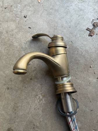 Single hole faucet, color is champagne bronze and is very good working and aesthetic condition. Needs just a bit of cleaning. asking price $20.