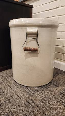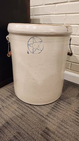 Antique Crock from the Star Stoneware Company that went out of business in 1945. This No. 12 crock is in perfect condition, with no cracks or chips, and its original wood handles are sturdy and secure and so smooth with a great aged patina. This size and condition are not easy to come by and would make a lovely addition to a collection. Asking $250. Pick up in South St. Louis City about one mile from the Ted Drewes Frozen Custard that is on Chippewa, 63109.