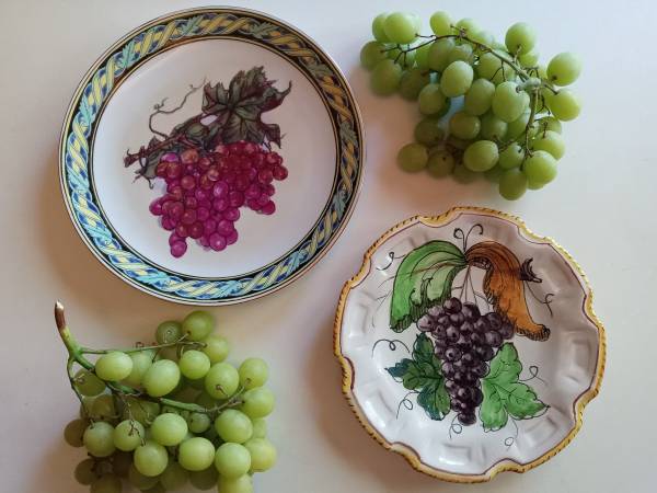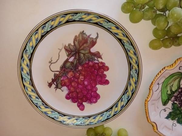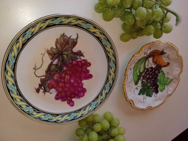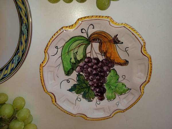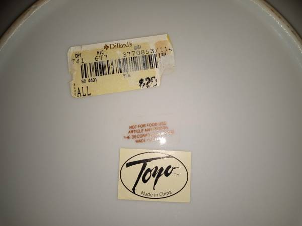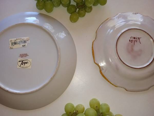 Left plate: 10 1/8" (trimmed in gold colored paint; vintage Dillard's dept. store tag).