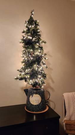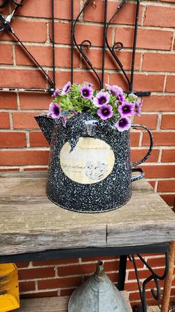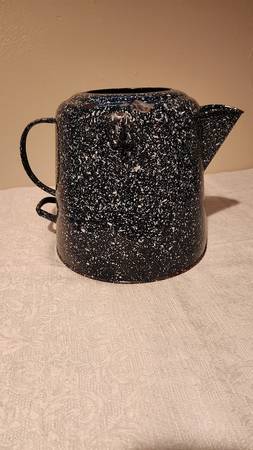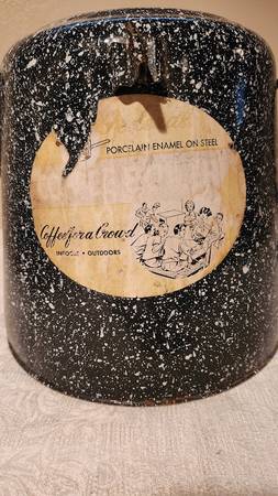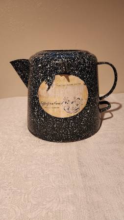 Amazing vintage "Porcelain Enamel On Steel" enamelware coffee pot. This piece has its original label with "Coffee for a Crowd" and great vintage advertising. Farmhouse Coffee Pot Cowboy Coffee Pot Piece measures 10" tall and roughly 12" wide. This great vintage piece would make a wonderful planter or the most amazing and unique Christmas Tree stand (tree included for an additional $20). Asking $20. Pick up in South St. Louis City, 63109 (about one mile from the Ted Drewes Frozen Custard that is on Chippewa).