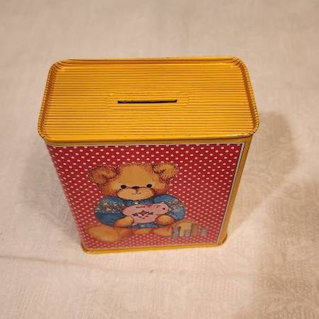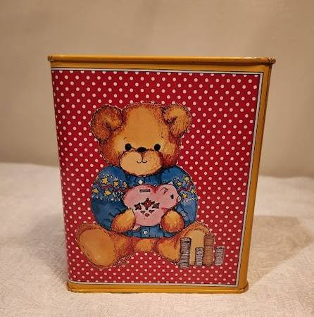 Vintage Enesco Book Bank with Teddy Bear holding a Piggy Bank, I believe it is from the 1980s. Bank is in pristine condition with bright cheerful colors and measures 5” tall x 4 ¼” wide x 2 1/3” deep. Asking $5 (similar items in not as good condition sell for $16 or more on Etsy and Ebay). Pick up in South St. Louis City, 63109