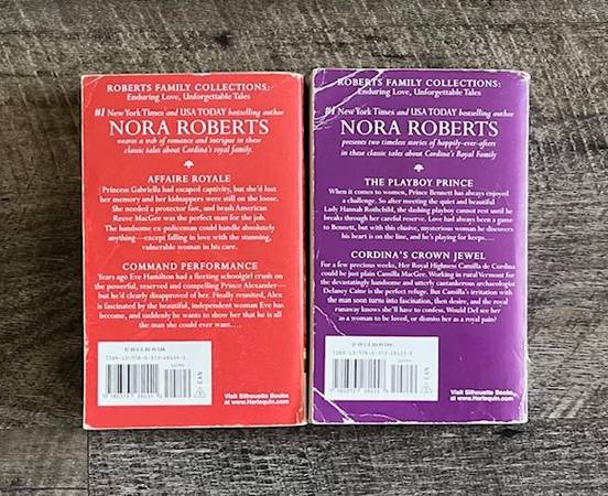 ~The Cordina’s Royal Family Quartet is an immersive jewel of a series by Nora Roberts, “the queen of romantic suspense” (The Columbus Dispatch). Fall in love along with ex-cop bodyguard Reeve MacGee and Princess Gabriella in Affaire Royale and swoon at the rekindled passion between Prince Alexander and Eve in Command Performance, then live the bachelor life with playboy Prince Bennett in The Playboy Prince and start a new life as an archaeologist with Princess Camilla in Cordina’s Crown Jewel. Perfect for adventurous fans of contemporary romance and royal sagas!~