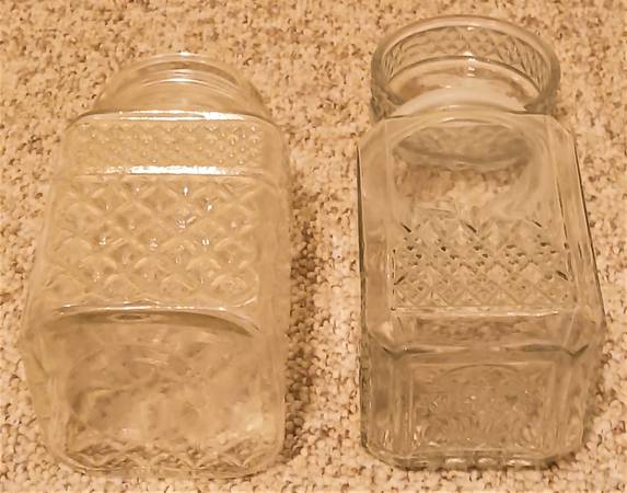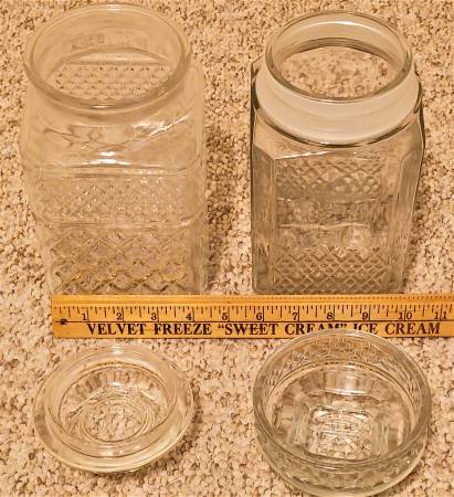 Hello, here for sale are 2 Glass Candy Jars. See pictures, this are very clean and are in great condition (no cracks, chips or scratches). They are both about 9 x 4.5.
