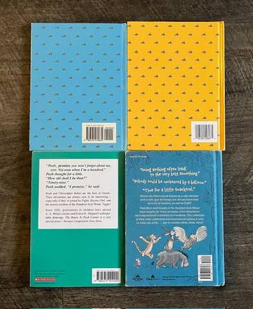 This offer is for 4 Winnie The Pooh Books. Three of the books are hardcover and the other is a paperback. All of the books are in good to excellent condition from a smoke free/pet free home. I am offering these books as a Lot of 4 books for only $10! But if wanting to purchase only book from this lot, the price would be $5 for just one book and $7 for two books. Otherwise, only $10 buys all 4 books listed in this lot!