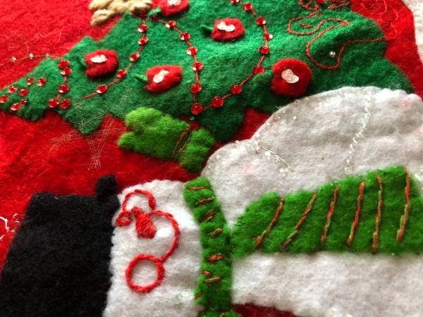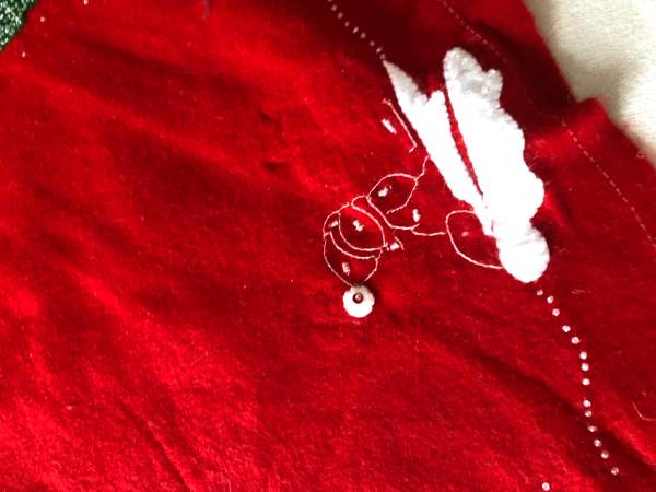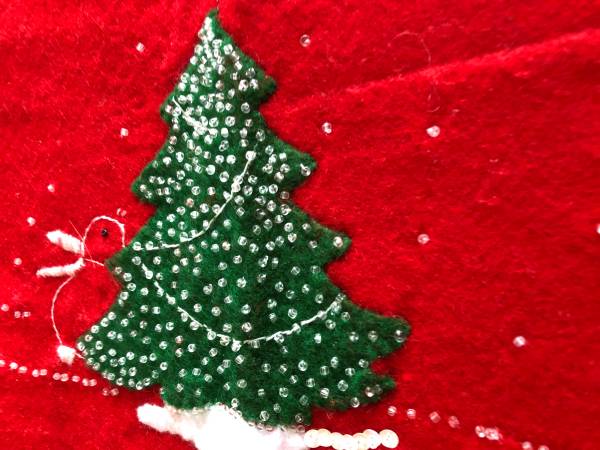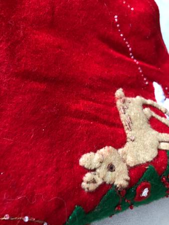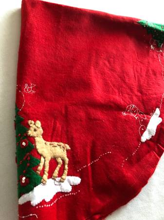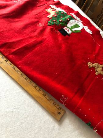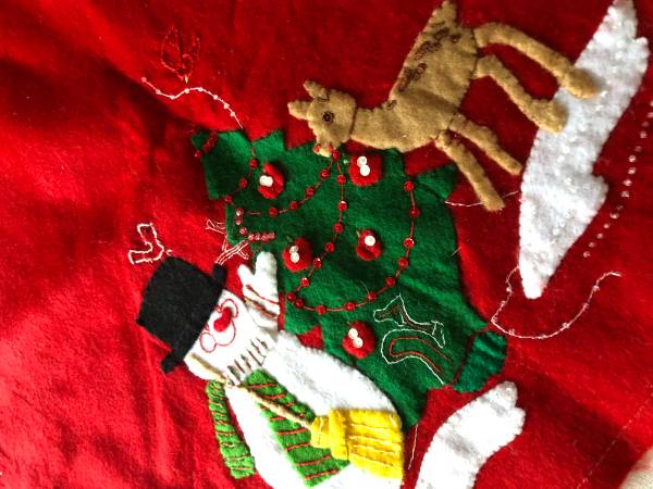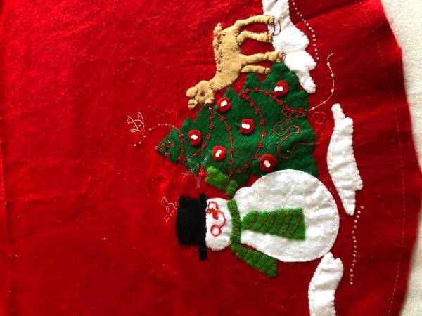 vintage Bucilla red felt applique Snowman handmade Christmas tree skirt, 43" 25.00 cash Call or text Ask for Roger Washington,Mo. 63090 Franklin Co. No emails please