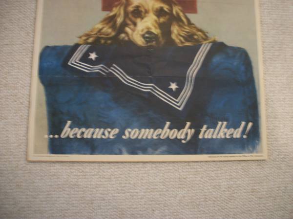 WW II 1944 "Because Somebody Talked" 28" x 20" - $75 (GROVER)