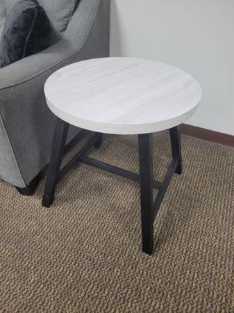 Off-white/black circle coffee table + 2 end tables, Set of 3: $231