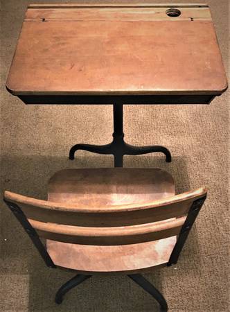 School Desk With Attached swivel seat, adjustable. #ANTIQUE