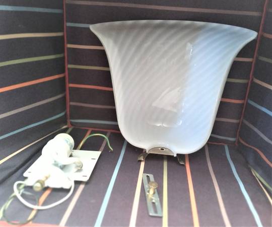 WALL Light: Milk glass shell lamp: This glass wall sconce is an example in Art Deco style.