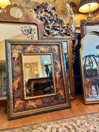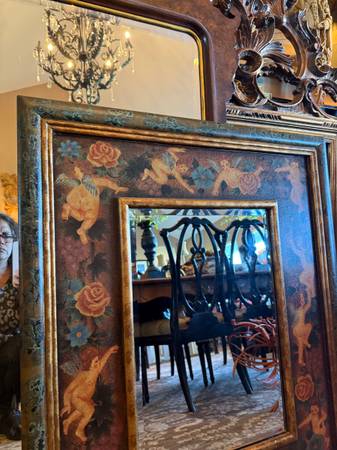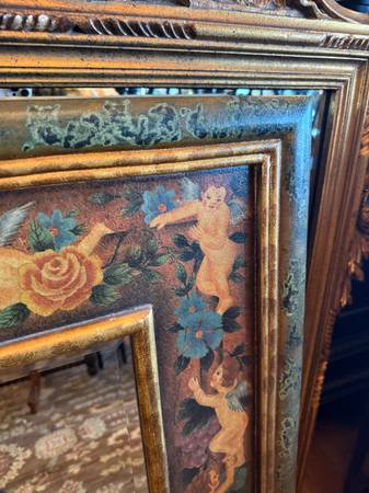 So beautiful! And if you are a fan of cherubs like myself, then this is for you! Beautiful rich, jewel tones on a solid wood frame. Beautiful aged patina adds so much character to this gorgeous...