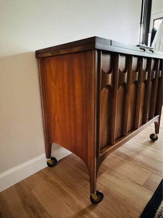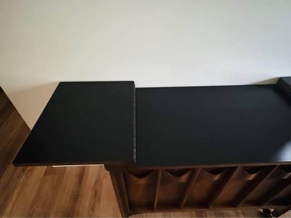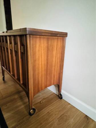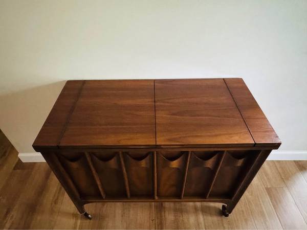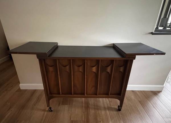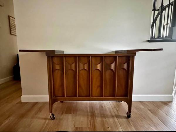 Wheeled buffet server cart from the Kent Coffey Perspecta collection in its original, unrestored condition.