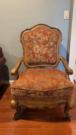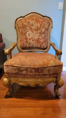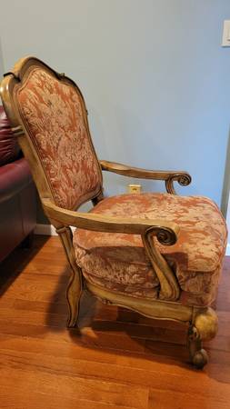 Multi-Color Arm Chair Large Chair comfortable for large or tall person Chair: 46 inches tall 31 inches wide Seat 29 inches x 27 inches Seat is 20 in off floor Very Good condition pet free home