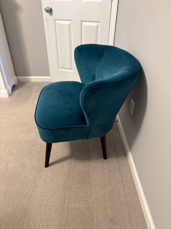 For sale is a teal accent chair with black legs. Like new! Approximately 25” wide and 30” tall.
