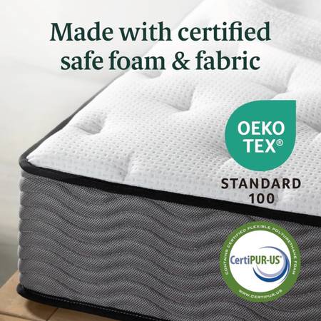 New in box, hybrid (memory foam and spring) 10" king size mattress in medium firmness. Mattress is 80"L x 76"W x 10" thick. Box is 79"L x 12"W x 12"D. Willing to deliver for extra if needed or can help load at easy home garage pick up in O'Fallon, Illinois. Cash only.