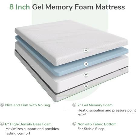 Brand new, still in the box, memory foam 8” twin size mattress in medium firmness. Mattress is 75"L x 38"W x 8" thick. Willing to deliver for extra if needed or can help load at easy home garage...