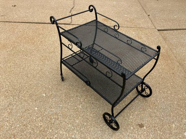 Outdoor Patio Furniture Set Wrought Iron 34 inch Serving Bar Cart Buffet Wheel cart