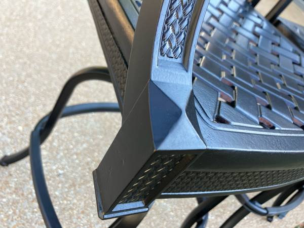 Set is ready to use now, it has new screw on feet, new swivels and new foot guards on bottom rails of chair. It’s practically new…