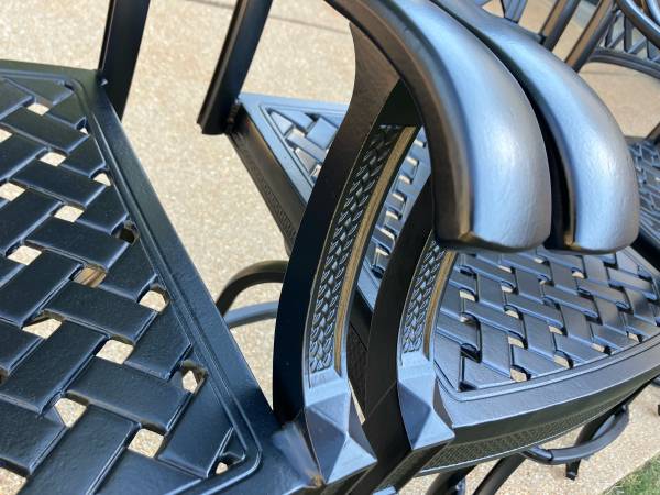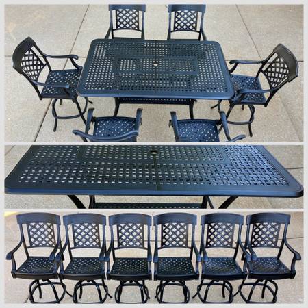 This is a High End Hanamint in Mint Condition - Lexington collection Bar Height Dining Set which includes 6 Swivel Chairs and a 68 inch Rectangular Table. Color Black.