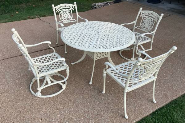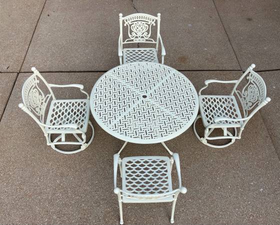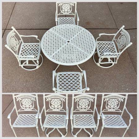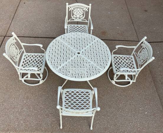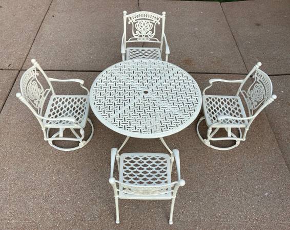 HEAVY Solid Quality Cast Aluminum Outdoor Table and chairs. Color Beige