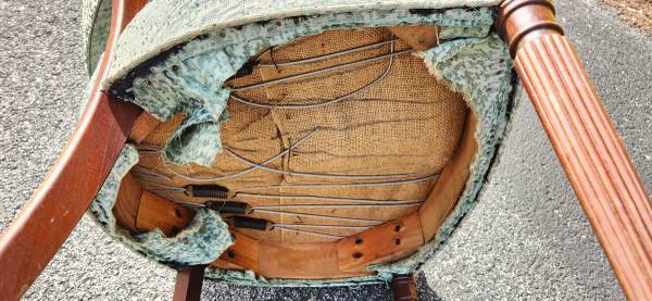 $6 Fabric is a bit faded. Wood is good shape. Cushion is spongy. Vintage to Antique piece. Located in Florissant near Lindbergh and Washington *Only have this (1) chair, not a set, do not have...
