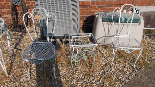 Vintage Outdoor furniture, 2 Lounge chairs, 2 Half Moon Large Tables, 2 Large chairs, Large Table with 8 chairs and Glass Top, 6 small end tables, And will sell all or Separate, call