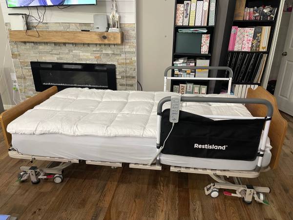 This Full Electric High / Low bed offers Adjustable Length to accommodate 80" to 84” mattresses (included), Adjustable Width from 36"W to 42"W, and a Super Low Height of 7" at its lowest to a high working height of 28” (not counting the mattress height). The bed has many features designed to provide optimal patient comfort and ease of use and reliability. Three motors provide quiet, smooth operation. The model features 6 function hand pendant, under bed night light, synchronized Hi-Lo functionality, locking casters and more.