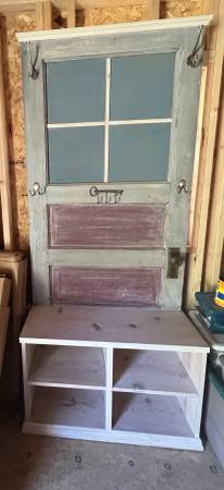 Excellent condition! Handmade vintage distressed hall tree! Lots of cube space for shoes, etc.! Plenty of hooks for hats, keys, etc! MUST SELL!!!!!