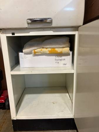 This one drawer, one door freestanding base cabinet is in good shape for its age. A great addition for your garage or shop.