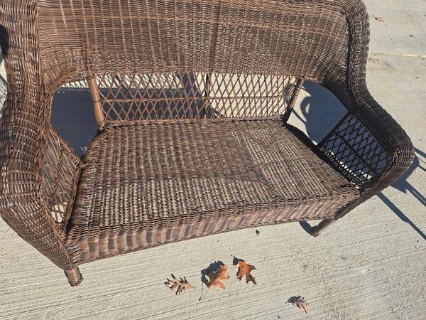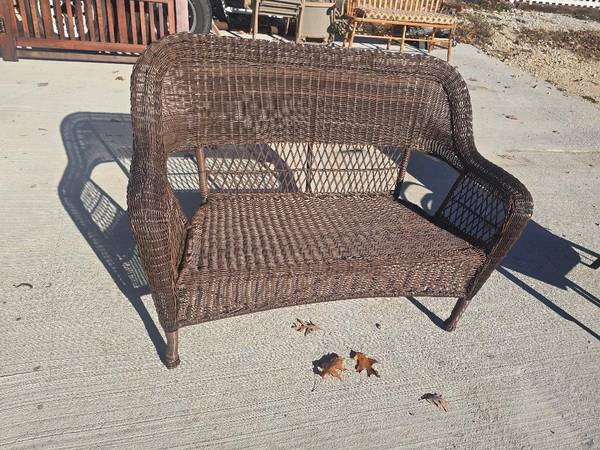 Beautiful resin-wicker outdoor loveseat in great condition. No cracks, no broken weave, and the frame is solid. Perfect for a patio, porch, sunroom, or garden seating area.