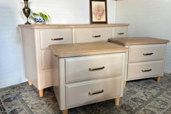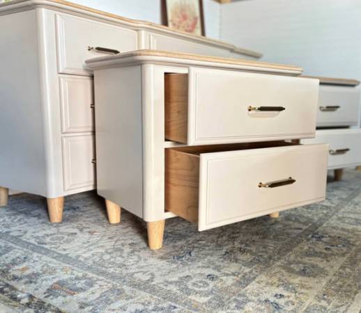 Dresser and nightstand.set of 3. Beige color.all drawers function and work great.
