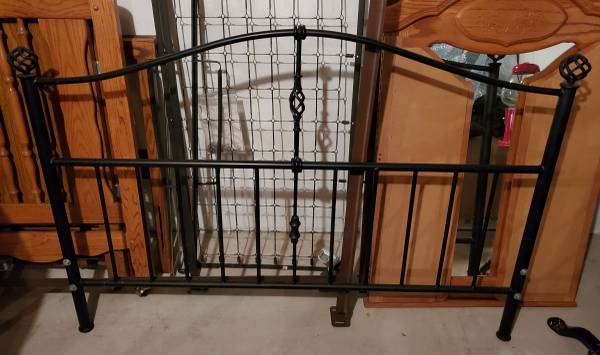 Solid Iron Queen size bed with Iron Horse cut outs. Includes headboard, footboard and sides. You need to cut about 4 boards for slats to hold a mattress and boxspring. (No mattresses)