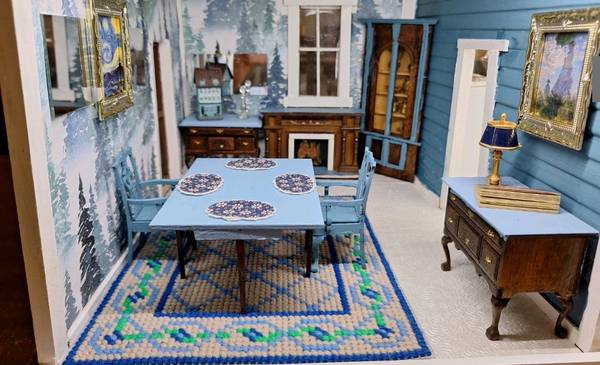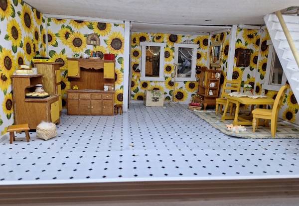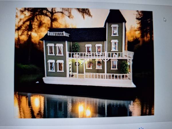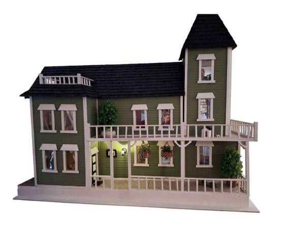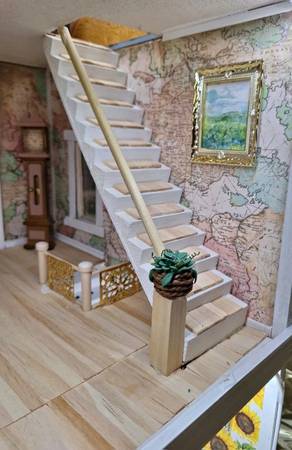 Dollhouse fully furnished and lighted. Age unknown. New flooring, wallpaper, refurbished furniture, some new furniture, spiral staircase... Local pickup only. Too big to ship. Thank you for reading!