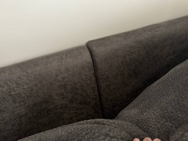 The installers messed up so the back doesn’t fully align but that can be fixed if you just redo the hook that connects the two. Might have a few scraps on the fabric from moving it into storage