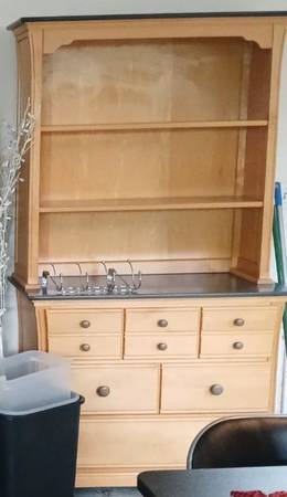 Little Folks, Dresser, China hutch storage cabinet with green countertop