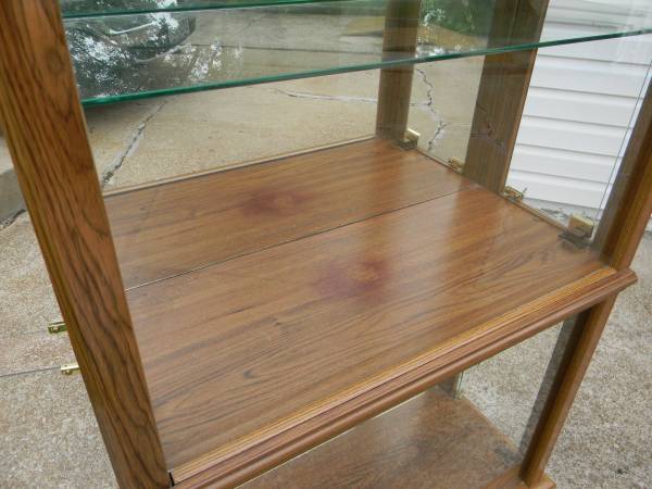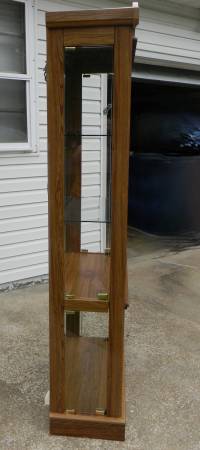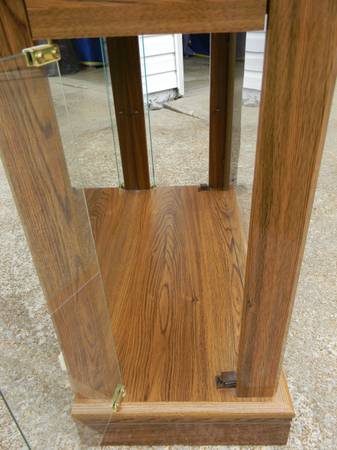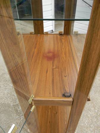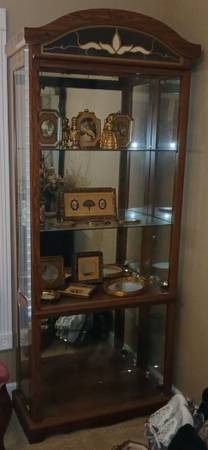 Curio cabinet with stained glass, side entry, lighted top and bottom