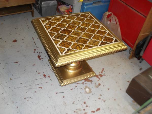 Accent/End Table - Gold color with Tiled Top, 22" x 22" x 17 1/2", $80.00 (cash only)