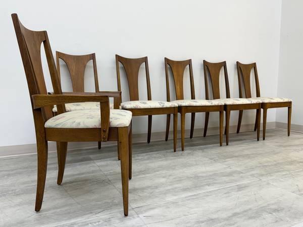 -WEAR: AGE APPROPRIATE / NICE ICONIC SET!! - NO SPLITS, SCRATCHES, CRACKS OR CHIPS - ALL JOINTS VERY SOLID & STURDY - MILD STAIN WEAR ON VERY TOPS OF CHAIRS - FABRIC CLEAN - LOOK AT PICS CLOSELY