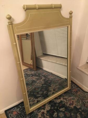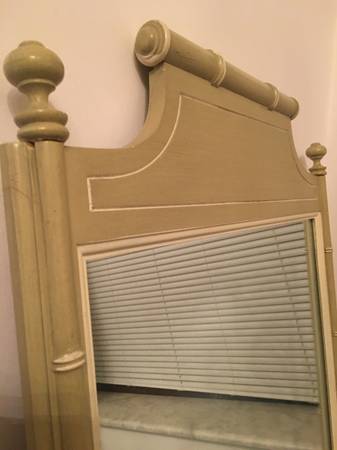 Vintage real wood framed mirror by quality mirror manufacturer, Lenoir. Pale green frame is styled in a Chinoiserie bamboo look. 38” x 25” Asian Chinese European French bedroom hall foyer walk-in...