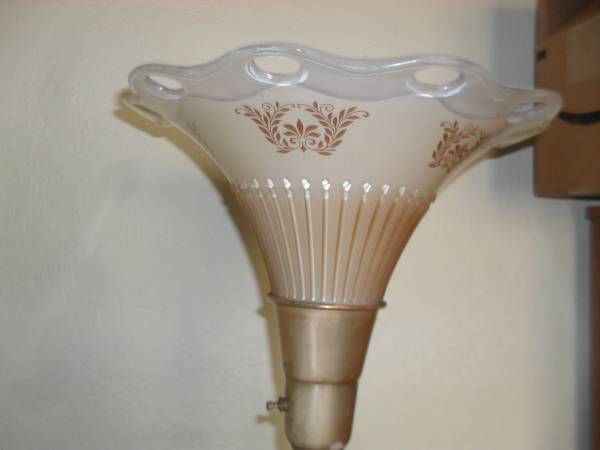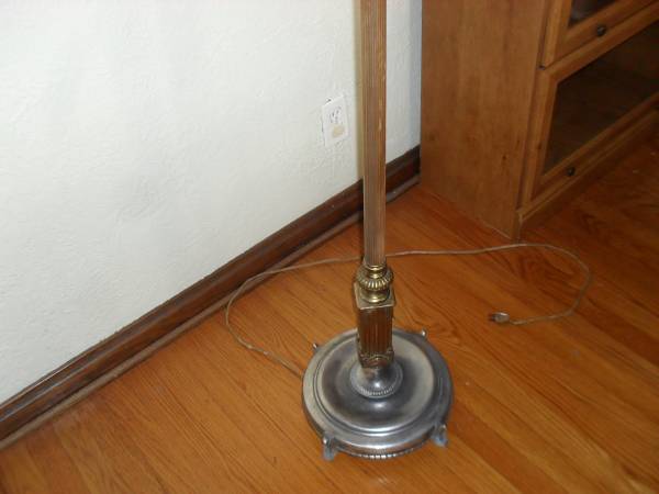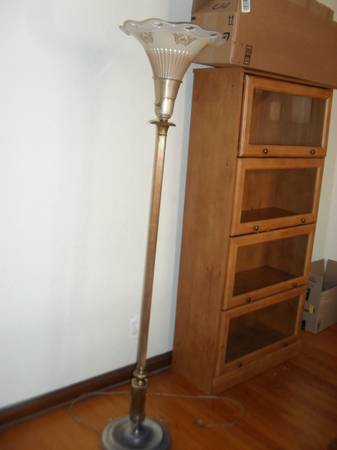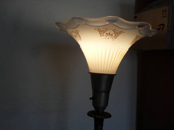 Floor Lamp, antique, glass shade, dim to brighter, the shade is 14 1/2", the base is 11", 62" tall, $225.00 (cash only)