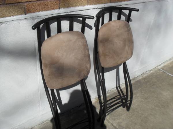 Two kitchen/dining chairs, cloth seats, foldable, seat is 13 1/2"x 13", from floor to seat 24 1/2" tall, from floor to top of stool is 34" tall, $50.00 (cash only)