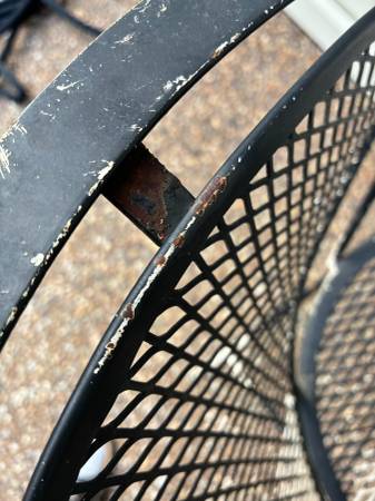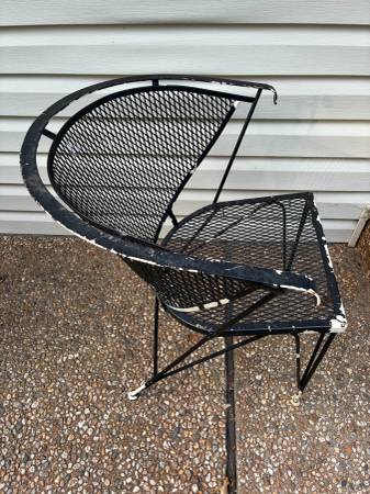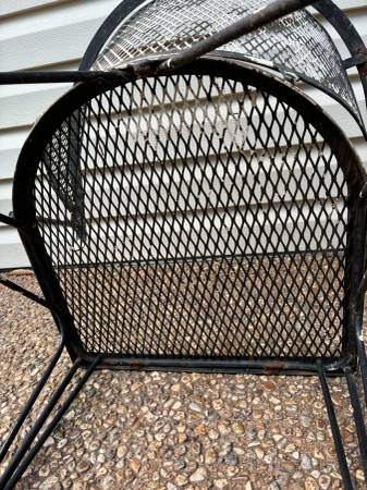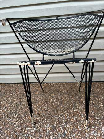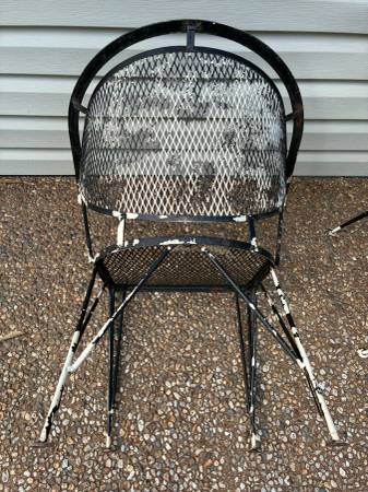 Price per EACH. 2 Mid Century Chairs Wrought Iron and Mesh Patio. Black paint peeling off white paint. I live close to south county mall in Oakville. I prefer text or call please, thanks.